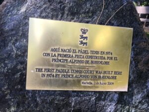 En minnessten var Solkustens första padelbana finns vid Marbella Club