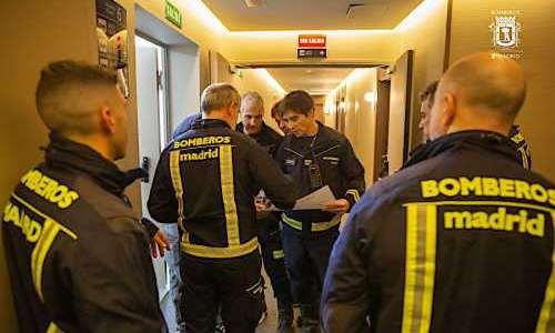 Han noterar också att Madrids räddningskårer har ökat antalet forceringar av dörrar under det pågående nödläget, under samma period förra året gjordes 441 dörröppningar och då hittades 27 döda personer. Det innebär en ökning med 163 % i antalet funna dödsfall jämfört med samma period 2019. Bildtext: Bomberos de Madrid, foto: Ayuntamiento de Madrid.