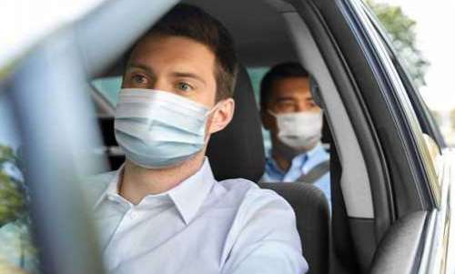 Bildtext: Ansiktsmask i fordon.