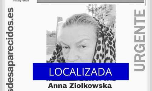 Den 68-åriga svenska kvinnan Anna Ziolkowska som tidigare i veckan rapporterades saknad av SOS Desaparecidos har lokaliserats. Det meddelar SOS Desaparecidos. Tidigare i veckan lades en efterlysning ut på sociala medier efter att kvinnan hade rapporterats saknad sedan i söndags i Fuengirola. Även i dagens nummer av papperstidningen Diario SUR framkommer det att kvinnan är rapporterad saknad.