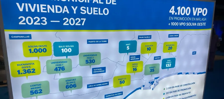 Den som passerar stadsdelen Teatinos kan redan nu se hur huskroppar och ett tiotal byggkranar reser sig mot skyn. Enbart här ska det bli 476 socialbostäder. Ytterligare 1.168 projekteras i områden som Distrito Zeta och Cortijo Merino där subventionerade bostäder ska byggas.