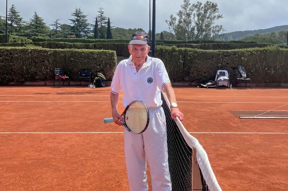 Leandro Campabadal från Tarragona fyller snart 95 år. Ålder är bara en siffra och den höga siffran hindrar honom inte från att delta i spanska veteranmästerskapet i tennis i Girona på Costa Brava.