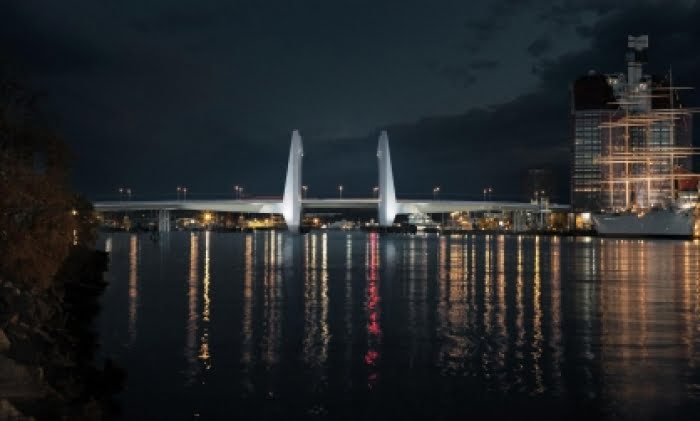 Det är inte första gången som delar av en bro som byggs i Sverige tillverkas i Spanien. När Öresundsbron byggdes tillverkades brodelar i Spanien. Brosektioner bogseras från Dragados Offshore i Cádiz till Sundlink Contractors’ hamn i Malmö.