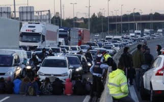 Motorvägar som AP-7:an och N-2:an kollapsade under gårdagen. Kilometerlånga köer med lastbilstransporter från och till Frankrike stod stilla.