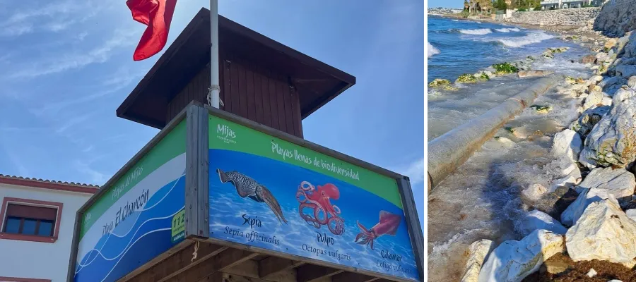 Det är röd flagg och badförbud som gäller på stranden El Charcón i Mijas Costa efter att ett avloppsrör gått sönder. Två meter av röret är trasigt.