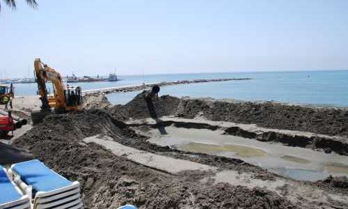 Samtidigt pågår stora arbeten med att återställa Playa del Faro väster om fritidshamnen Puerto Deportivo (bilden).
