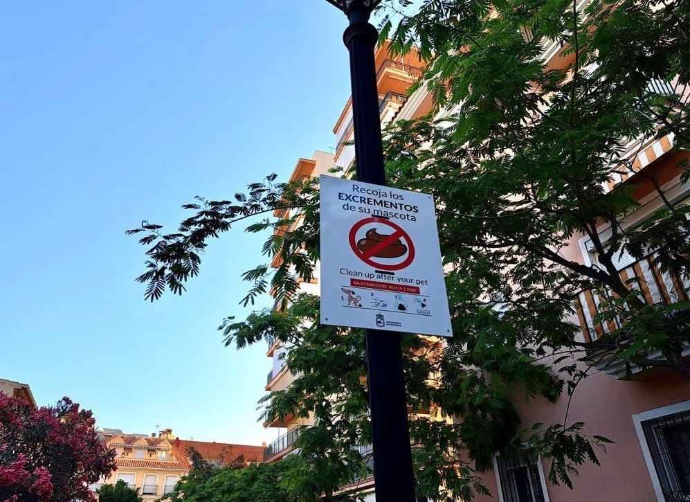 I Fuengirola mitt på den spanska Solkusten håller kommunen på att sätta upp 200 affischer som ska påminna hundägare om deras skyldighet att ta upp avföringen. Annars väntar böter från 301 till 1.500 euro.