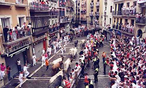 Normalt sker tjurrusningarna (encierros) genom stadens gator varje dag klockan 8 från den 7 juli till den 14 juli, något som alltid livesänds i spansk tv. Tjurarna springer omgivna av runt 20.000 personer från en corral i utkanten av gamla stan 825 meter till tjurfäktningsarenan där tjurarna sedan möter sitt öde genom matadorens försorg på eftermiddagen. Sedan det officiella registret startades 1924 har 15 personer mist livet i rusningarna, dessutom har 6 åskådare slagit ihjäl sig efter att ha trillat ner från murar, det brukar också vara 200 – 300 personer per år som behöver vård för blessyrer i samband med rusningarna.
