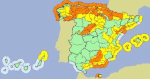 Väderlekstjänsten har utlyst flera varningar i Spanien de närmaste dygnen.