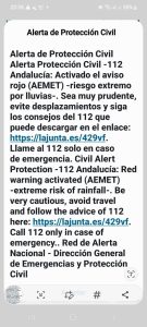Mellan klockan 22.35 och 22.40 tutade det i tusentals mobiltelefoner i Málagaprovinsen då Civilförsvaret Protección Civil skickade ut en ”Es-Alert” på grund av Röd vädervarning.