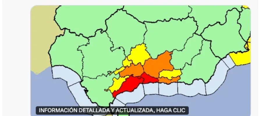 Det kan komma 120 mm på tolv timar. Av den orsaken höjer väderlekstjänsten Aemet vädervarningen till Röd för Málaga stad, Costa del Sol, Guadalhorcedalen och Axarquía. Allmänheten uppmanas att hålla sig hemma.